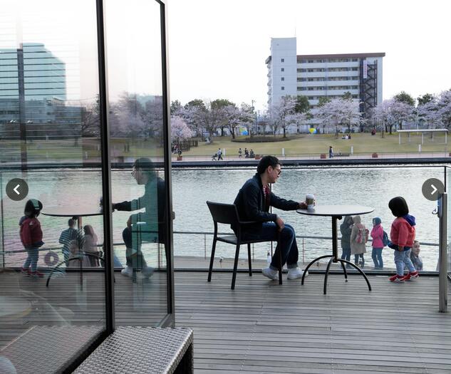最近,在社交媒体上广受关注的这家星巴克咖啡店名为富山环水公园店,其店面墙体镶嵌了大玻璃外墙,举目远眺则是满山残雪的立山群峰,近处则是盛开的樱花,景色富有层次,近远景交织构成一幅极为和谐的美照。