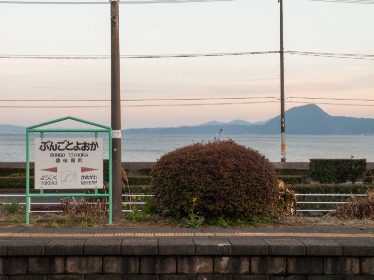 丰后丰冈站位于大分县速见郡日出町境内的“JR日豊本線”上,每逢日暮,列车沿着别府湾驶入木造的车站,看着车站站员目迎远送的背景,已然一道独特的风景。从丰后丰冈站月台望向别府湾,可以看见对岸的高崎山、大分市区。夜晚时分,景色更佳!