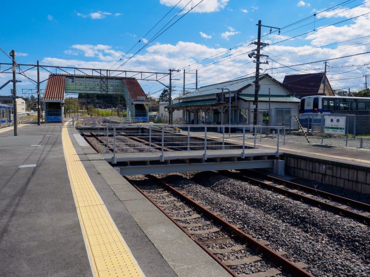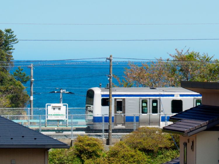 常磐线是福岛县内唯一一条沿海的铁路路线,其中离海最近的就是末续站。海边的村庄也因地震受到了海啸的摧毁,常磐线也停运半年多。即便如此,现在红色屋顶的木制车站仍受到精心的打理,站台边五颜六色的鲜花也开得正艳。