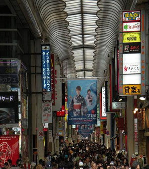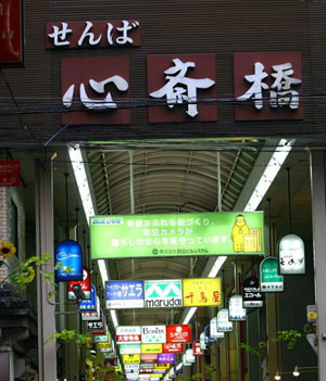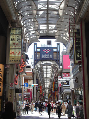 心斋桥是以带有拱廊设施的心斋桥筋商店街为中心发展起来的。这里大型百货店、百年老铺、面向平民的各种小店铺鳞次栉比。石板铺就的人行道、英国风格的路灯和成排砖造建筑物的周防町筋,格调高雅,这一带被人称为欧洲村。