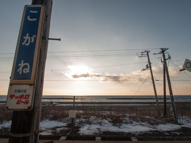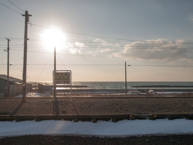 从札幌坐函馆本线去小樽方向的话,右手边是靠近石狩湾的区间,正中间便是朝里站。一下车,就能看到茫茫的雄伟的海原。看着3月的北海道与站台上积的雪,就会盼望着春天的到来。