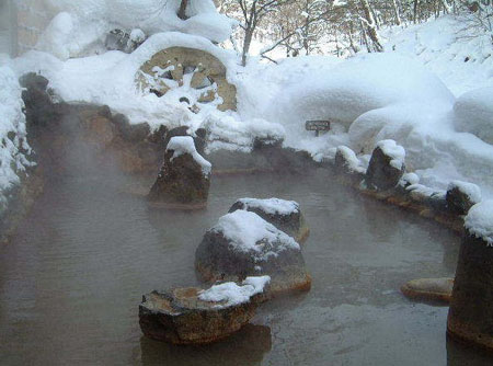 日本北海道最高峰大雪山旭岳的半山腰有座“魔幻温泉”。温泉名叫“天女汤”(意为仙女温泉),只有冬天才能去。在厚厚的积雪中突然裂开的洞底,滚滚地涌出透明泉水。