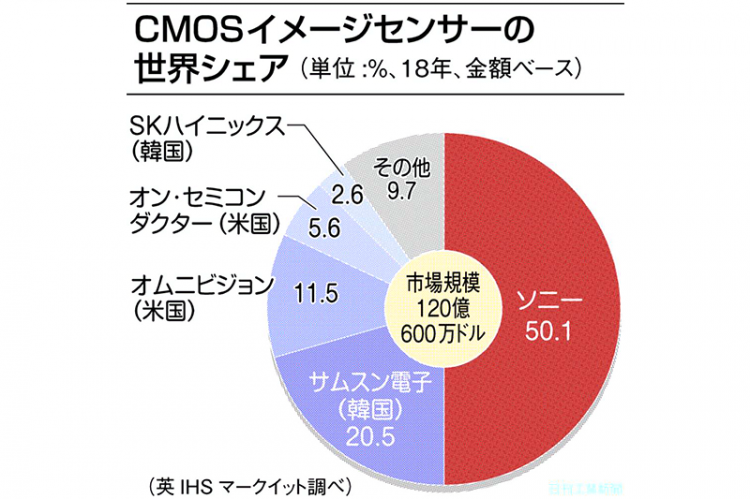 本来,在CMOS图像传感器市场中索尼的竞争力就很强。该公司的全球市场占有率约为50%。第2位韩国三星电子的市场占有率为20%。今后,索尼也将进一步推动图像处理领域的研究开发,强化其作为该公司收益支柱的地位。