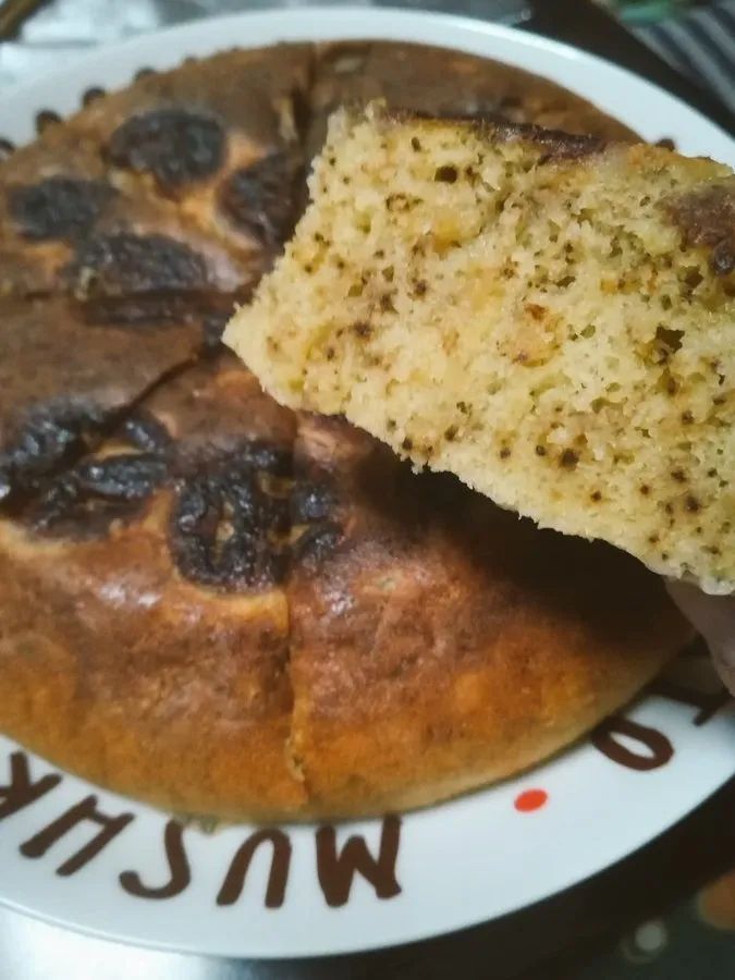 我妈用电饭煲做了个黑芝麻黄豆樱花蛋糕!!!!据说加了樱花粉!?