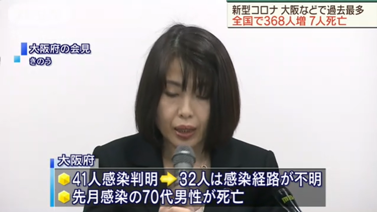 大阪府4日确诊了41名感染者,其中有32人感染途径未知,占比高达78%。