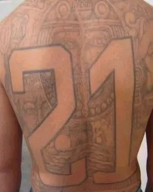 其中的数字往往代表所属的帮派。比如这个21,就是墨西哥裔黑帮“阿兹特克区”的专属标识。