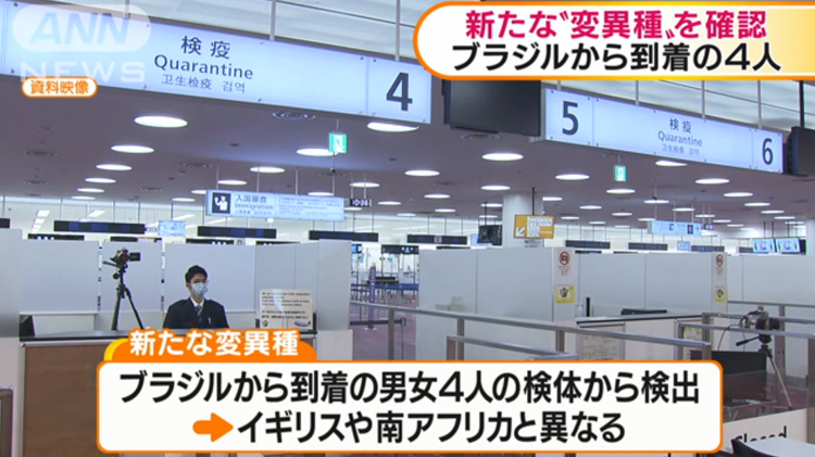 据日媒,日本厚生劳动省称,在羽田机场发现4例来自巴西的新型变异新冠病毒确诊病例,且不同于在英国和南非发现的变异新冠病毒。