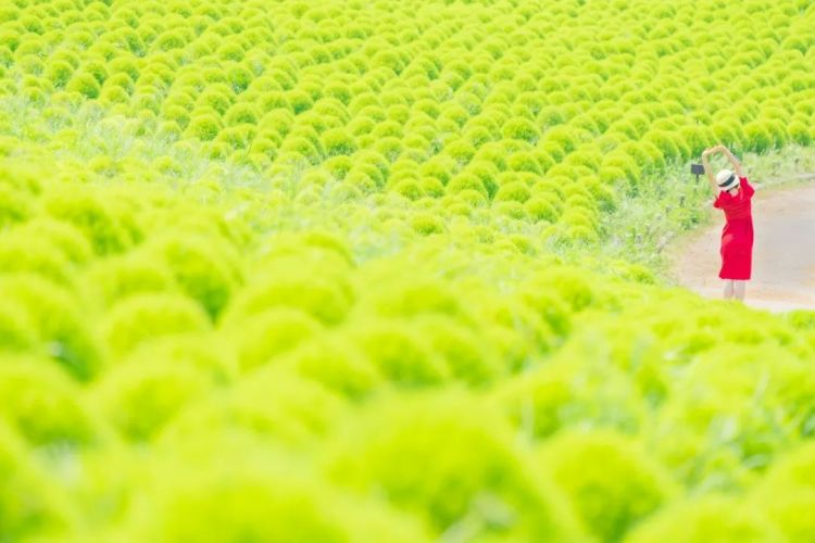 茨城常陆海滨公园里茁壮生长的扫帚草,绿油油一片好治愈