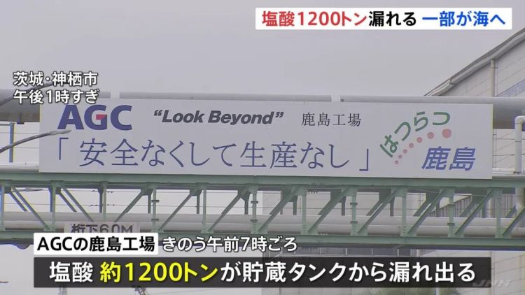 日本一工厂1200吨盐酸泄漏,部分流入大海