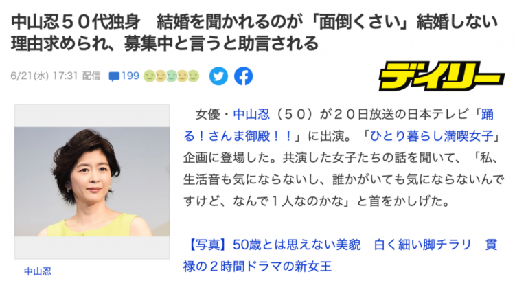中山忍此番不婚的回应,掀起了日本网友的热烈谈论。