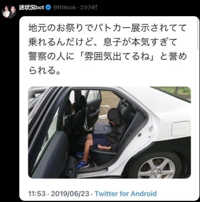 老家祭典在展示巡逻车,儿子给大家的感觉让警察都说出了“有那种感觉了”的赞扬