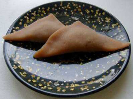 “八桥”原本是人名,是日本江户时代前期的一位音乐家(1614年-1685年)。最开始,八桥使用“八桥城秀”这个名字,在江户时代的大阪以演奏三味线出名,后来,八桥开始学习筝曲,并改名为“八桥检校”,毕生致力于日本筝曲的创作,最终成为日本筝曲的始祖。八桥去世之后,为了纪念他在音乐上所作出的杰出贡献,京都人开始制作形状如同古筝一般的点心派发给过往的人们----这便是京都名点“八桥饼”的来历。还有一个说法就是因为它的外形与“伊势物语”里出现的三河(现代的爱知县)•八桥地方的桥形状很相似。