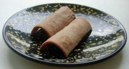 “八桥饼”分为二种:一种叫“生八桥饼”,柔软润滑,保质期大约只有9-10天左右;还有一种“烧烤八桥”,口味酥脆。其实不论生、熟,八桥可说是京都名产中的名产了。八桥是一种脆饼干,它的形状模仿古琴,长轴方向作成凸形,看上去象个弯曲的长方形。蒸制成的称为“生八桥”。“生八桥”也有用切成四方形的坯子包馅儿的,很多人一听“八桥”一般就会想起这种包馅儿的。后来发展到草莓,抹茶馅。皮也有各种口味。