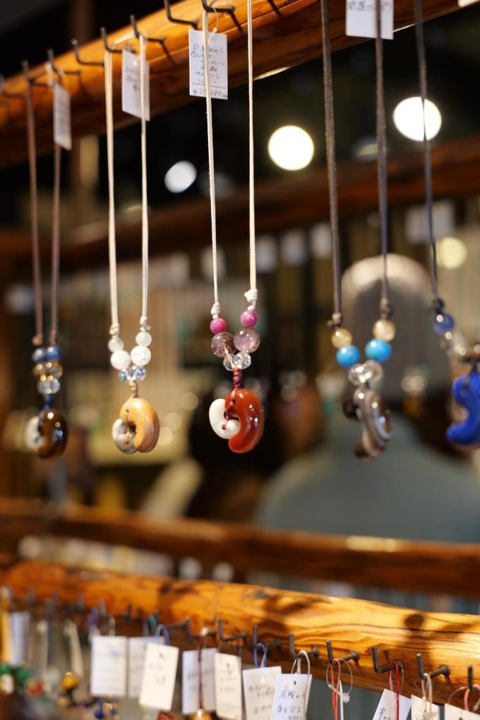 出云大社外的商店街,有纪念品、小吃店等可以逛逛。鲷鱼烧可以当做垫肚小食,还有勾玉饰品制作体验,既可以买现成的,也可以自己选取喜欢的勾玉(每个勾玉象征的意义不同 )做成手链、项链或耳环等饰品,是非常有灵气、还具有本地特色的纪念物了!