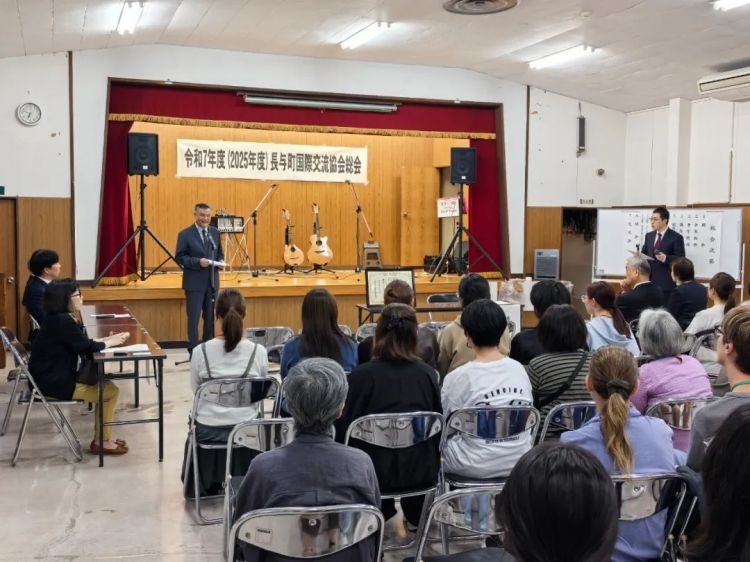 2025年4月18日,驻长崎总领事陈泳出席长与町国际交流协会总会并致辞。长与町町长吉田慎一、町议会议长安藤克彦和议员、该协会会长石川昭仁与会员及当地多国留学生代表等50余人参加。