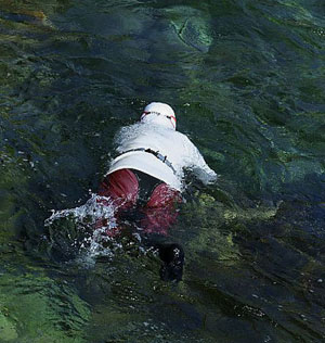 虽然有被鲨鱼袭击的危险,但据说她们穿的白衣可以起到防鲨的作用。