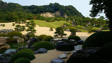 另外,美术馆的庭园也非常地美,面积达5万坪的宽大庭园内,借景出云的群山建造了枯山水庭、苔庭、池庭、白沙青松庭等各种创意庭园,春天的杜鹃、夏天的深绿、秋天的红叶、冬天的雪景,四季展示不同的美丽光景。