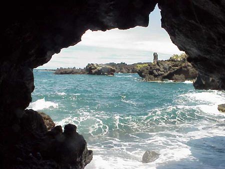 吊钟洞位于久慈海岸大屁海上。巨大的岩石上有一个敞开的洞穴,以前洞的顶部曾倒吊着一块吊钟形的岩石。传说从前夫妇双双自尽时都会到此相聚然后敲打吊钟形的岩石再升天堂。