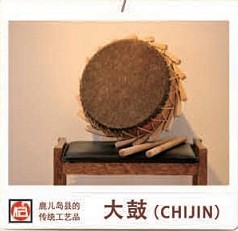 由鼓而来的“CHIDIN”,是奄美独特的大鼓。把在奄美大自然中自生自长的樟树和檀香木的中间挖空,在上面绷上马皮与山羊皮合成的鼓面,用楔子和纽带固定而成。在奄美全年重大仪式之一的“八月舞”中,是不可缺少的伴奏乐器。